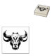 Un sello de goma de lobo muestra una imagen de un toro. El diseño incluye detalles complejos como textura de piel y rasgos faciales para capturar la esencia del animal. El sello está hecho de caucho duradero sujeto a una madera o para fácil manejo y uso. Se puede usar con varios colores de tinta para crear impresiones en papel, tela u otras superficies, añadiendo un toque de naturaleza natural a los proyectos.