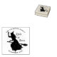 Sello de goma de halloween personalizado. Ilustracion vectorial con silueta gruesa de bruja volando sobre una escoba. Texto "Truco o trato". Añade tu texto.