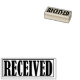 Perfecto para mantener su negocio organizado, estos sellos de goma incluyen la palabra "RECIBIDO" dentro de un marco rectangular.