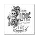 Diseño vibrante y colorido con esqueleto femenino tomando café. El colorido texto dice: "Digo IDK mucho pero confíe en mí, sé saber". Este diseño está disponible en una amplia variedad de productos.