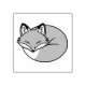 Dibujo de tinta estilizada de un zorro dormido acurrucado.