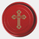 Un sticker muy único que parece un hermoso sello de cera rojo religioso con una cruz dorada. Perfecto para una boda, Confirmación, Bautizo o cualquier ocasión especial.