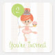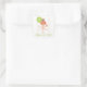 El foco está puesto en una pequeña bailarina que salta por el aire sosteniendo un quequito en una mano y un globo en la otra. Estos bonitos y personalizables pegatinas y sobres de cumpleaños rosas y verdes pueden ser personalizados con la edad del chica de cumpleaños en el globo y lo que quieras decir debajo. Pintura © Chrissy H. Studios, LLC. Todos Los Derechos Reservados.
