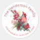 Sello adhesivo de cierre de sobre de dirección de regreso de Navidad elegante y festivo, para su tarjeta de Navidad y escritura de cartas, hecho en blanco, con hermoso arte de un cardenal macho rojo posado en una rama de bayas. El texto personalizado rojo está listo para personalizar, con su información. Papelería, sobres y más disponibles.