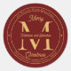 Elegante monograma minimalista moderno grande con nombres de pareja y saludo de vacaciones en tonos rojo oscuro y dorado. Diseño compuesto por Holiday Hearts Designs (derechos reservados).