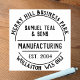 Sello de la empresa de fabricación. Sello de goma de los fabricantes. Nombre de la empresa, tipo de negocio, más Dos líneas de dirección en un efecto circular. Sello de caucho comercial para todo tipo de artículos de papelería, sobres, paquetes, etc. Marque su dirección de retorno de forma sencilla y elegante.
