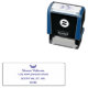 Este sello de goma que se auto-emana se muestra en el cuerpo azul real y negro. Mostrado con tinta PURPLE, pero como siempre puedes personalizar tus colores, tinta, etc. Líneas de texto personalizado para las líneas de título y dirección. Tiene corona en la cima. Personalizar este artículo o compra como se muestra.