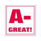 Este sello incluye la letra "A-" y la palabra "¡GRAN!". Podría ser utilizado por profesores, educadores o asistentes docentes cuando dan una nota mientras marcan asignaciones de estudiantes, concursos, proyectos, exámenes, exámenes, papeles y otros trabajos académicos.