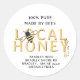 Una etiqueta informal para pequeños apicultores que prefieren una etiqueta subestimada. Etiqueta blanca con un goteo de miel de aspecto realista en la Y de las palabras LOCAL HONEY. Una linda abeja que vuela a través de las palabras en la etiqueta seguramente traerá algunas sonrisas.