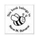 Abeja de dibujos animados sonriente volando. Campos de texto personalizados para mensaje y nombre.