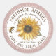 Elegante ilustracion vintage de girasol con abeja de miel realista, texto marrón decorativo con borde punteado blanco sobre rosa.