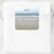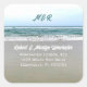 Sello de sobre con dirección de devolución de vida en la playa. Los stickers cuadrados o redondos tienen un fondo de mar y arena. Incluyen las iniciales de una pareja o monograma en la parte superior. Los nombres y la dirección están en blanco utilizando dos estilos de fuente. Este diseño funciona para los stickers cuadrados y redondos, que vienen en dos tamaños.