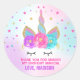 Rosa y etiqueta redonda del favor del unicornio del arco iris del oro.