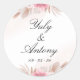 Estas pegatinas redondas elegantes presentan flores rosadas elegantes y plumas boho-chic. Son el accesorio multipropósito perfecto para sellar los sobres de sus invitaciones, decorar los favores de la boda, o añadir un toque romántico a su suite de papelería de recepción. Una forma simple pero efectiva de unir su tema bohemio con gracia.