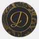 Sellos de monograma negro y dorado con un bello guión de texto sobre un elegante damasco floral. ¡Estos pegatinas le añaden un toque de clase único a sus invitaciones de boda!