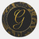 Sellos de monograma negro y dorado con un bello guión de texto sobre un elegante damasco floral. ¡Estos pegatinas le añaden un toque de clase único a sus invitaciones de boda!
