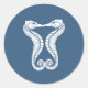 Pegatinas de caballitos de mar sobre sobres para envíos de invitaciones a bodas con temática oceánica.