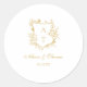 Elegante escudo boda pegatina de sello para sobres clásico con escritura de oro de floral.