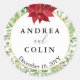 El diseño del sello para sobres de los Navidades de los partidos temáticos incluye la vegetación botánica acuarela de temporada de vacaciones acentuada por bayas de vacaciones y la tipografía tradicional. #ChristmasWedding #Boda