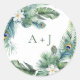 Sello para sobres de boda indio con temática pavo real con hermosas plumas de pavo real, flores jazmín y hojas tropicales.