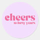 Un estilo sencillo y moderno inspirado en la escritura retro y el minimalismo de mediados de siglo. Fondo púrpura pastel con letras rosas brillantes, "vítores a cuarenta años".