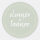 Moda y simple etiqueta verde pastel, con sus nombres en escritura moderna, puede usar para sus regalos de boda, bolsas de regalo o como un sello para sobres de fecha para guardar. Diseñado exclusivamente para usted por Happy Dolphin Studio. Si necesita ayuda o productos coincidentes, por favor contáctenos en happydolphinstudio@outlook.com.