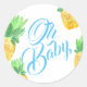 Niño tropical lindo piña sello para sobres de ducha bebé Tiene diferentes ilustraciones de piña con las palabras Oh bebé en la parte delantera azul Perfecto para un tema tropical de ducha bebé