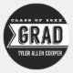 Añada un divertido sello a sus anuncios de graduación o invitaciones a fiestas con este moderno diseño de tipografía. Las letras blancas en negro clásico combinan con cualquier tema o decoración. ¡También hace un gran favor pegatina!