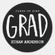 Añada un divertido sello a sus anuncios de graduación o invitaciones a fiestas con este moderno diseño de tipografía. Las letras blancas en negro clásico combinan con cualquier tema o decoración. ¡También hace un gran favor pegatina!