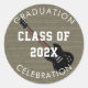 Sello para sobres de graduación redonda con imagen de guitarra eléctrica negra y texto blanco personalizado. Incluir la clase de con año en el centro y personalizar dos áreas de texto curvadas con "celebración de graduación" o cualquier otra redacción. Música, músico, tema del guitarrista para el graduado de colores marrón y negro. El diseño sólo funciona en pegatinas redondos o cuadrados.