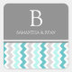 sellos para sobres de monograma personalizado para boda, en elegantes sobres turquesa azul turquesa azul, gris y blanco casual y retro chevron zigzag rayas vintage, la adición perfecta para guardar la tarjeta de fecha o los sobres de invitación a la boda, disponibles en muchos productos bodas coincidentes. Contáctenos para una solicitud de cambio de color.