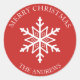 Sello para sobres elegante con un hermoso copo de nieve sobre un fondo rojo.