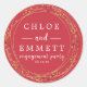 Marco dorado moderno con microoro y estrellas rojas enmarcan los nombres de la pareja comprometida. La parte de compromiso y la fecha se escriben a continuación. El texto es blanco crujiente en una combinación de texto vertical y cursiva. Todo se edita fácilmente. Este sello para sobres forma parte de la colección Valentine Heart. Contiene todo lo necesario para crear fácilmente una fiesta de compromiso muy especial. Debería ver un enlace en esta página. Si no ves el enlace o si necesitas ayuda con un elemento, por favor contacta conmigo.