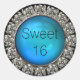 Elegante pegatina de sello para sobres dulce dieciséis invitaciones, hecho en gráficos de tono plateado y azul turquesa bauble con diamantes falsos, alrededor del exterior. Personaliza el texto negro, para leer lo que quieras. Bonito toque final a nuestro Glam Snow Leopard Sweet Dieciséis invitaciones y sobres de cumpleaños.
