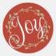 Una simple corona botánica con bayas y la palabra "Alegría" en escritura sobre un fondo rojo. ¡El sello para sobres perfecto para tus tarjetas de vacaciones!