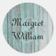Sello para sobres boda de moda de campo, con gráficos de madera turquesa pintada de fondo. Personaliza con los nombres de la novia y del novio. Productos a juego disponibles.