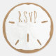Sello para sobres de cambio de dólar de arena. Pegatina redonda de arena marrón y arena blanca. El texto de RSVP se puede cambiar o eliminar.