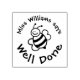 Sello de caucho positivo para que los profesores lo usen como estímulo y elogio para sus estudiantes. El sello está decorado con un bonito ilustracion de abejas sonriente y feliz. Se personaliza con el nombre del profesor y una frase corta destinada a animar y apoyar el buen trabajo de un estudiante. Personalizar con tu propio nombre y mensaje positivo favorito.