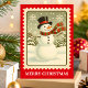 Celebra la magia del invierno con esta alegre tarjeta de sello postal de hombre de nieve. Un diseño inspirado en la vintage perfecto para saludos festivos, en blanco por dentro para tu propio mensaje.