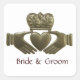 Emblemadores irlandeses de boda con el símbolo de la amistad, la lealtad y el amor en un pegatina cuadrado. Fácilmente personalizar con el nombre de la novia y del novio. El acento es perfecto para tu boda irlandesa o duchas nupciales.