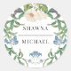 PEGATINAS PARA RECUERDOS DE BODA o sellos de sobre. Borde simple, elegante y moderno de flores silvestres en arco floral en colores pastel de flores azules, lavanda, moradas, rosadas, amarillas y blancas con follaje de hojas verdes. Un conjunto completo de productos está disponible para su compra en la colección. Creado por la artista y diseñadora licenciada internacionalmente, Audrey Jeanne Roberts ©. El color de fondo se puede cambiar. Diseñado gráficamente por la artista y diseñadora licenciada internacionalmente, Audrey Jeanne Roberts, derechos de autor.