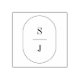 El diseño simple en negro y blanco presenta un monograma oval geométrico con las iniciales de la pareja y un toque elegante pero boho.