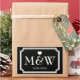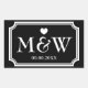Rectángulo, en blanco y negro, la boda favorece a los pegatinas. Corazón lindo con iniciales de nombre monogramadas de novia y novio más fecha de matrimonio. Pegatinas de agradecimiento o selladores de sobres/sellos personalizados. Tipografía elegante para las iniciales del nombre de novia y novio. Diseño de borde de moda / diseño elegante. Color del fondo del personalizable. Diseño romántico de etiquetas temáticas de amor.