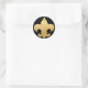 Elegantes y elegantes pegatinas de color negro y oro de lis round hacen grandes sellos para sobres para sus invitaciones y notas de "Gracias"! También se pueden utilizar para sellar pequeñas bolsas de regalo y etiquetas de decoración. Presenta un color de fondo negro y una flor de lis dorada. El color de fondo puede cambiarse a su elección de color especial.