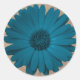 Sellos de Pegatinas Rústicos Blue Gerber Daisy Round con un fondo marrón vintage.