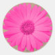 Pegatinas redondos rusticos de color rosa caliente Fuchsia Gerber Daisy Seals con fondo marrón vintage. Tienen un encaje impreso y un diseño de gemelos bajo la margarita rosa. Son excelentes para enviar invitaciones de boda.