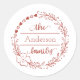 Pegatinas redondas o cuadradas con monograma de apellido de familia con un hermoso diseño de corazones de guirnalda floral. Agregue el apellido de su familia.