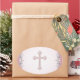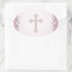 Sellos de sobre de anuncio y invitación de cruz y rollo de flores de damasco rosado elegante.
