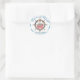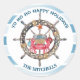 Estilo navideño costero, sellos de sobre festivos con tema náutico que presentan obra de arte original de una rueda de capitán rústica con adornos de vidrio marino y luces de cuerda, y un cangrejo rojo lindo que sostiene un letrero de madera flotante que dice "Feliz Navidad". Acentuado por rayas azules y blancas pintadas a mano y desgastadas, con un saludo festivo "Yo Ho Ho Felices Fiestas". Personalice fácilmente el saludo y el nombre, simplemente haga clic en el botón "personalizar" y reemplace el texto de muestra con el suyo.