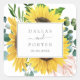 Estos sellos para sobres rústicos de bodas eucaliptos de girasol son perfectos para una boda campestre. El diseño floral bohemio incluye girasoles amarillos, flores rosas y un eucalipto verde cazador en la acuarela con un elegante y moderno toque boho. Personalice la etiqueta con los nombres de la novia y del novio.